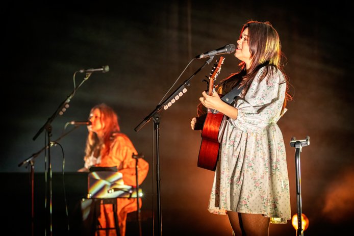 Det kan sies at hovedinstrumentene til Johanna og Klara er bass og keyboard, og gitar. I går kveld tok Johanna også frem sin kjære håndharpe, blant annet under fremføringen av Heaven Knows og New Year’s Eve. I løpet av kvelden er det til tider små glipp i noen av fremføringene, en feil akkord her, ikke så samkjørt der. Men disse små feilstegene blir nokså fort glemt under en ellers magisk aften.