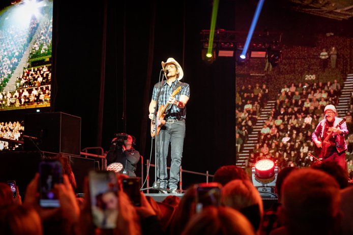 Låtene - og Paisley - til tross for sjarm og karisma, velter seg i forventede floskler. Noe som forsterkes av en nesten FOR god og enorm skjerm bak scenen som ikke bare prosjekterer Paisley større for de langt bak, men som gjennom hele konserten kverner ut HD-filmer som backer opp alle klisjeene i musikken.Jada, det er nostalgi og en viss fernweh på gang; lengselen etter en tid og en livsstil og en følelse mange countryfans lever med, men gedigne bilder av roadtrips langs amerikanske landeveier og legendariske Grand Ole Opry blandet med filmer av ekorn på vannski, fisk, lek med mer eller mindre klassiske tv-serier som Stranger Things og Knight Rider samt liksom-selvironiske filmer av Paisley og hans liksom-kontroversielle liv, tok faktisk oppmerksomheten BORT fra scenen, heller enn å dra oppmerksomheten mot Paisley. Av og til glemte man nesten å følge med på hva som skjedde på scenen fordi krystallklare bilder i bakgrunnen stjal all oppmerksomheten.